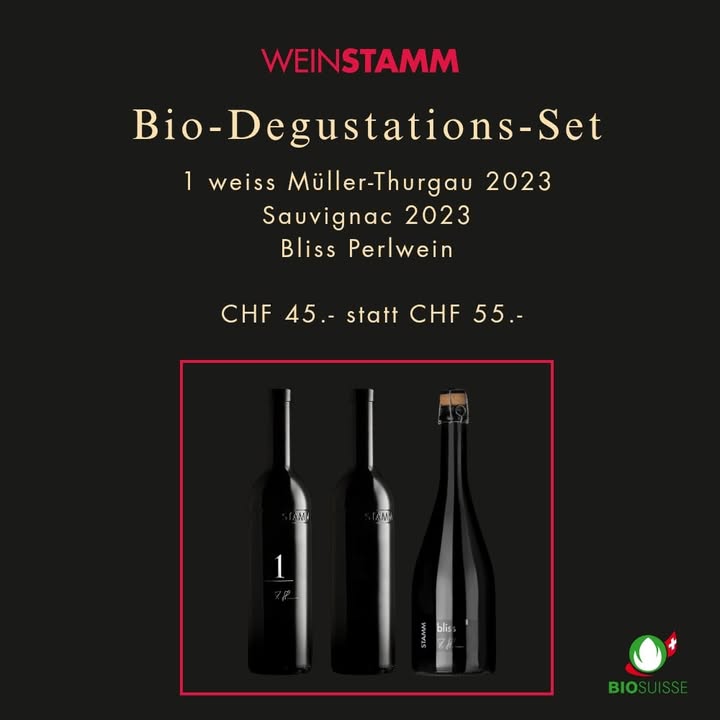 Jetzt zuschlagen und zwei Weissweine sowie ein Perlwein aus unserem biologischen Anbau für kurze Zeit zum reduzierten Preis von CHF 45.- statt CHF 55.- trinken! Link in Bio!