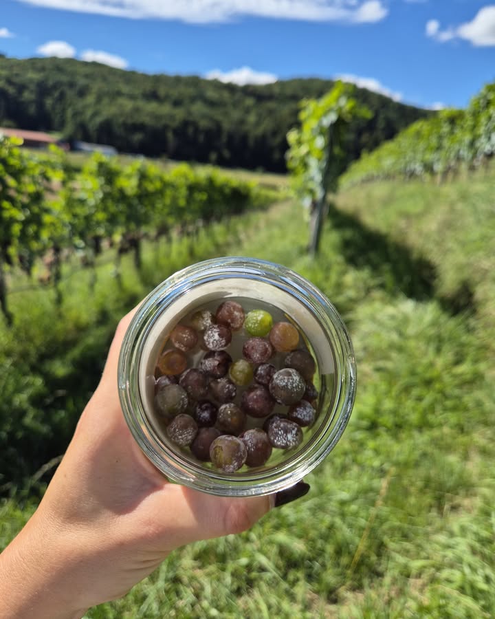 Öchsle (Zuckergehalt), pH und Gesamtsäure. Anhand dieser Werte, dem Zustand der Trauben sowie dem Wetter entscheidet Markus, welche Trauben wann gelesen werden.