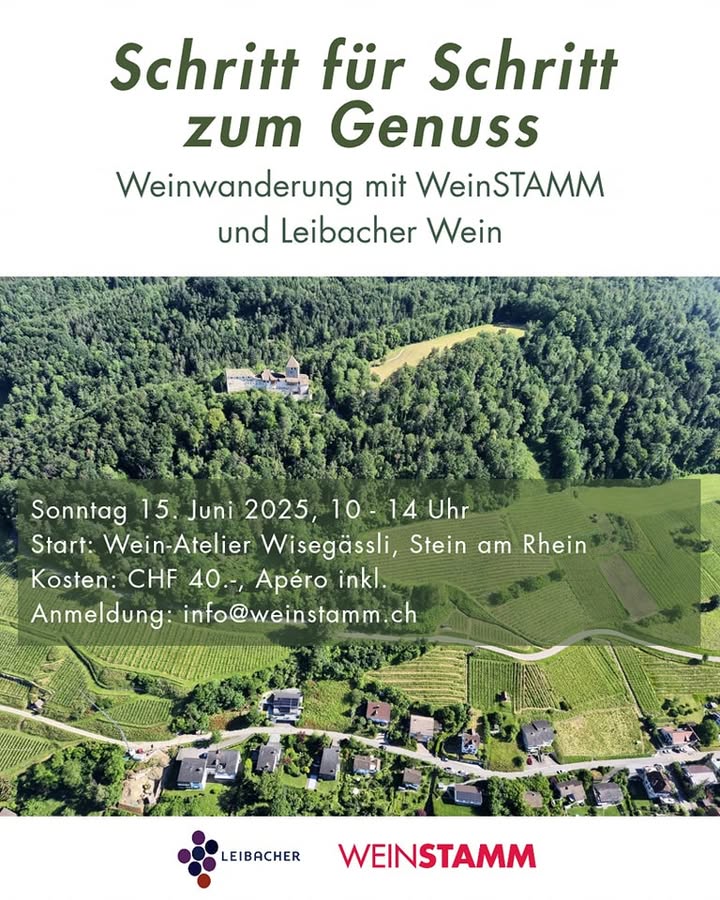 Die erste von 4 Weinwanderungen findet diese Jahr am Sonntag, 15. Juni in Stein am Rhein gemeinsam mit Michael von @leibacherwein statt. Freut euch auf eine abwechslungsreiche und informative Reise durch die Steiner Rebbergen!