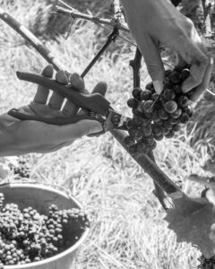 BEERENPROBE : Wie bestimmen wir den Zeitpunkt, eine Traubensorte zu ernten? Wir gehen regelmässig durch die Reben und sammeln Beeren. Deren Saft analysieren wir im Labor nach Oechsle-Grad (Zuckergehalt), Gesamtsäure